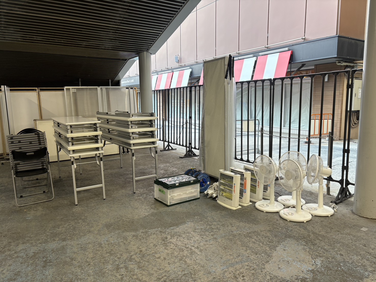 椅子・テーブル・テントの手配、搬入、搬出お任せください。