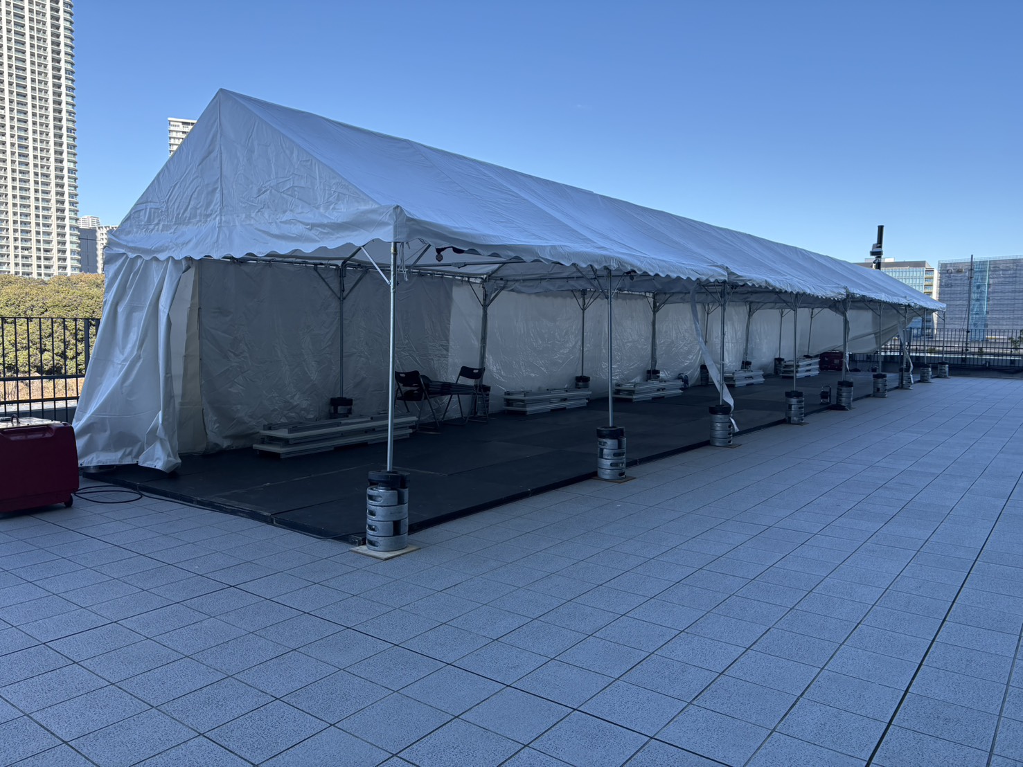 1月29日(木) 京王アリーナ 備品納品、テント設営、目隠し幕設営