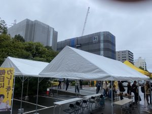 10月15日(水) 京王アリーナ 備品搬入 テント設営