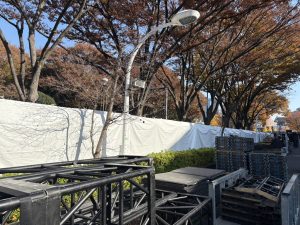 11月27日(木) 代々木第一体育館 備品納品、テント設営