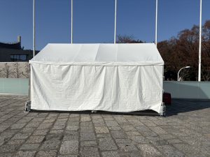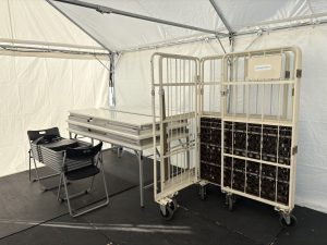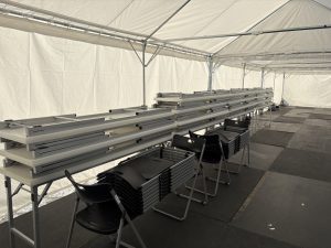 備品納品、テント設営