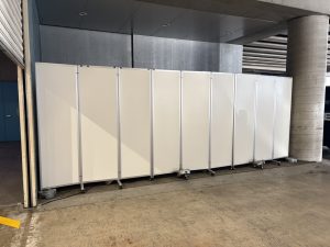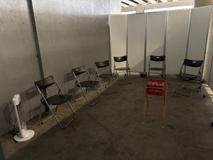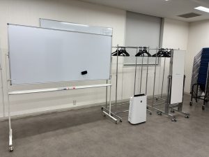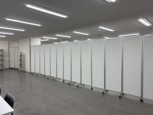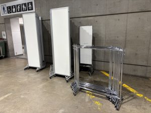 備品納品、パーテーション設営
