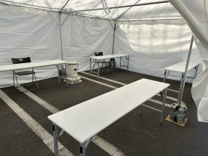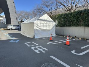 1月29日(木) 京王アリーナ 備品納品、テント設営、目隠し幕設営